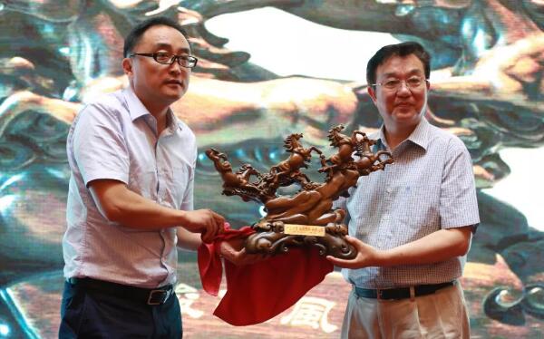股份公司副總裁王衛(wèi)平代表公司向編委會致賀詞,并作為東道主回贈中西醫(yī)結(jié)合心腦血管病雜志編委會《八駿雄風》木雕禮品。