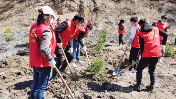 志愿者們參觀了“保護(hù)生態(tài)環(huán)境主題展板”,沿著晨光路進(jìn)行“健康徒步”,最后來到虎林水庫山上開始綠化植樹。大家有的拿樹苗,有的挖坑,有的培土,忙碌的場面,熱火朝天。一個(gè)個(gè)鮮紅的身影,一顆顆翠綠的樹苗,一面面飄揚(yáng)的旗幟,在這片空曠的土地上編織出一幅美麗的畫卷。