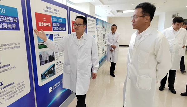 在企業(yè)發(fā)展歷程和產(chǎn)品展示區(qū),王春生總經(jīng)理把珍寶島藥業(yè)從虎林市發(fā)源、成長到今天業(yè)務拓展遍布全國各地,發(fā)展成集制藥工業(yè)、科技研發(fā)、中藥產(chǎn)業(yè)、金融投資的集群化發(fā)展歷程向省領(lǐng)導做了匯報。同時,針對公司產(chǎn)品的生產(chǎn)研發(fā)及品種功效、市場銷售等情況向張起翔副省長做了詳細的匯報?,F(xiàn)場就省領(lǐng)導關(guān)切的“三七”系列品種的產(chǎn)量、產(chǎn)值、利潤、功效及市場銷售情況進行了深入的交流。