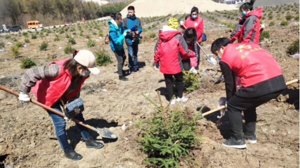 志愿者們參觀了“保護(hù)生態(tài)環(huán)境主題展板”,沿著晨光路進(jìn)行“健康徒步”,最后來到虎林水庫山上開始綠化植樹。大家有的拿樹苗,有的挖坑,有的培土,忙碌的場面,熱火朝天。一個(gè)個(gè)鮮紅的身影,一顆顆翠綠的樹苗,一面面飄揚(yáng)的旗幟,在這片空曠的土地上編織出一幅美麗的畫卷。